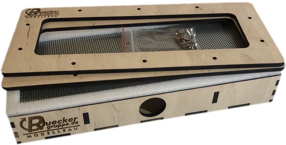 Material: Multiplex-Holz mit Ansauggitter aus Stahl
